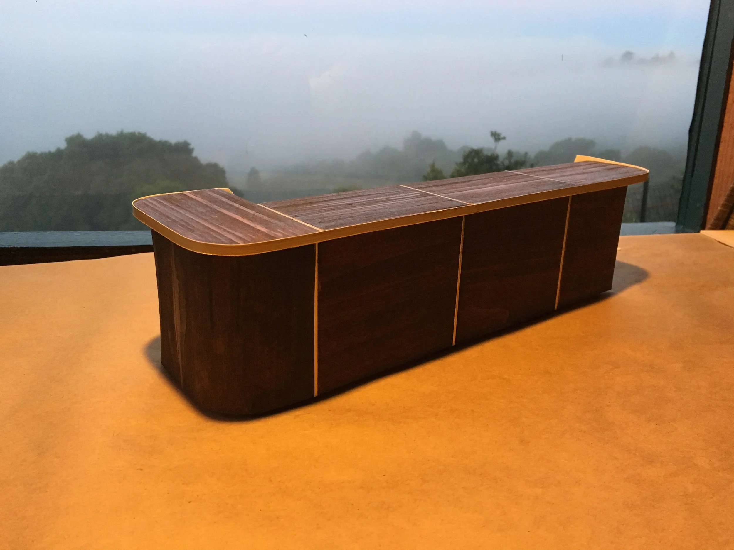 First project is an over 14 foot front desk for Funky Door Yoga in Berkeley, CA. They've been a client of mine for almost 10 years and the first piece I put in there is still in use today. This one, the FD-FD is going to be the most complicated piece I've ever attempted! Exciting. I want to use CNC to carve out the table top. It's art, art that gets to be touched and used everyday. I made a model to see how to begin. That part I love. Next up, to the lumber yard to start gather lumber for the top.